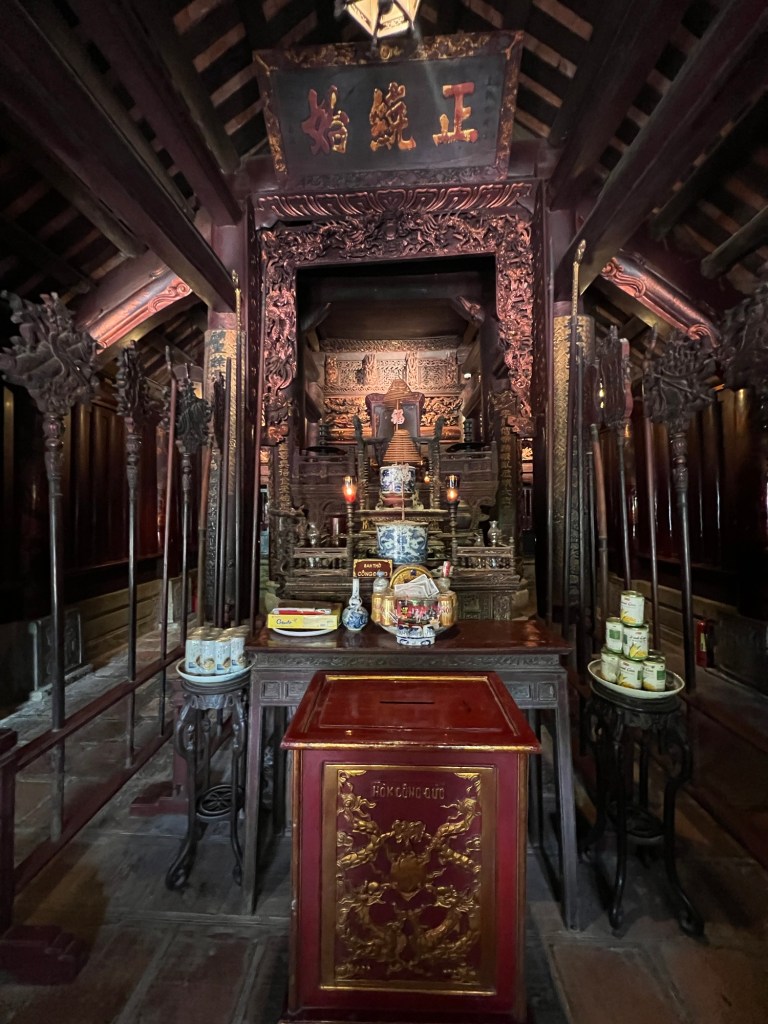 The temple was built in Dinh Dynasty, consisting of 2 floors with 8 roofs. However, the temple was rebuilt in 1998 on the original foundations. The temple holds the ancient bell with the words “Phu Nghi Tu Chung”. This was cast in the second Thiệu Trị era (1842). Next to the corridor of the temple grounds there is a stone tablet.