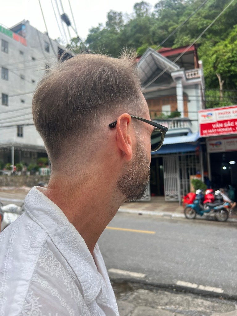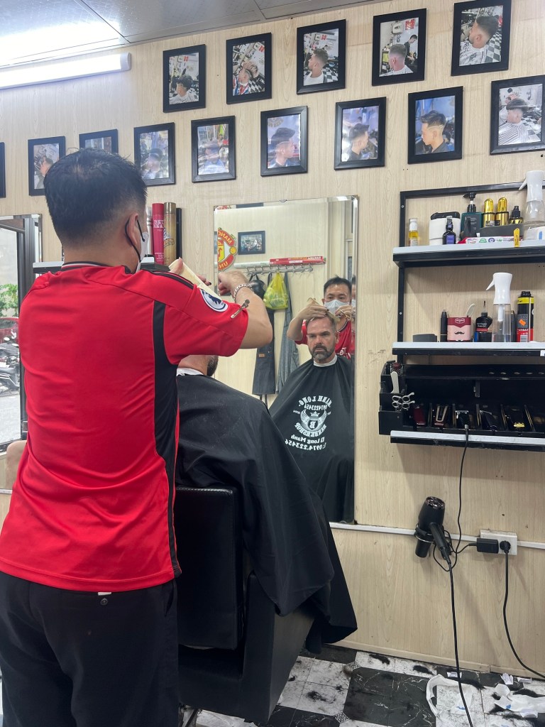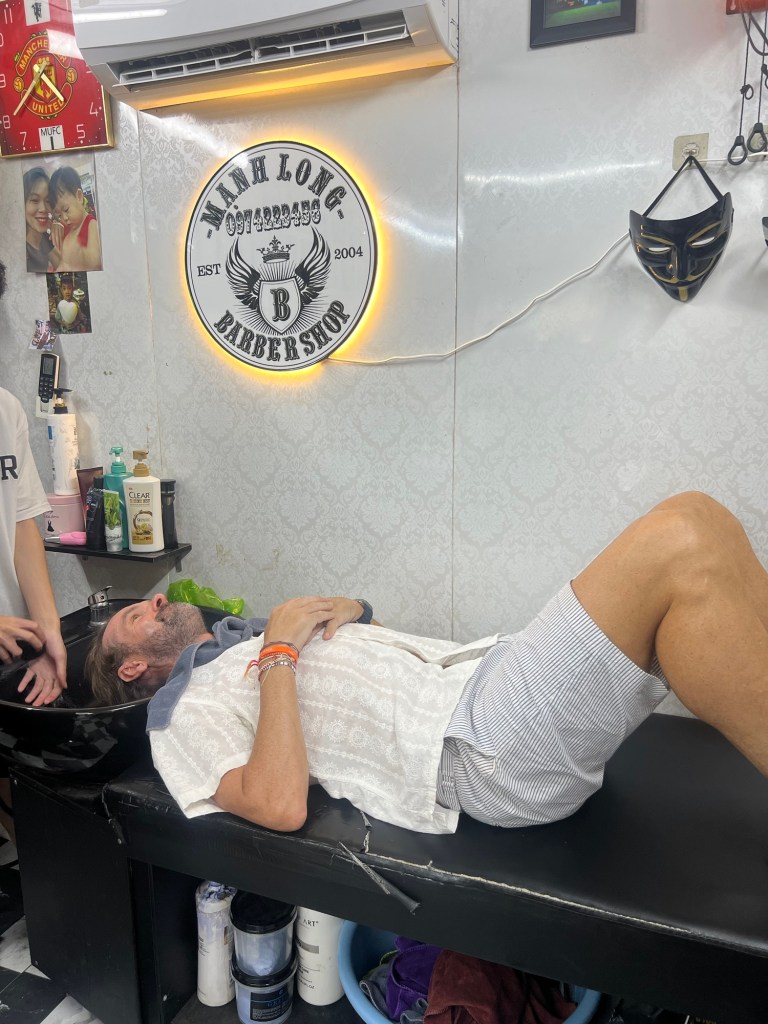 The barbers shop was a modest affair, but you couldn’t fault the service and Andy was soon lying down getting his hair washed in readiness for the latest Vietnamese styling..!!