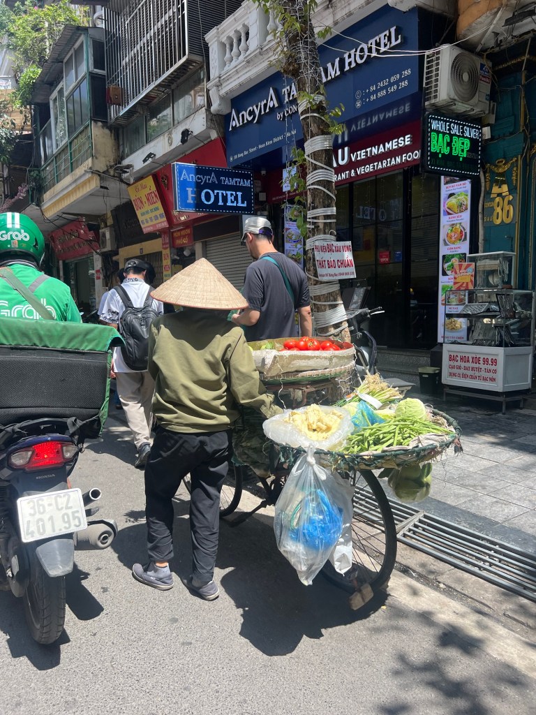 Many of the bicycle vendors we passed were selling goods including flowers, ripe fruit, as well as roadside cooks selling pho and bun cha.