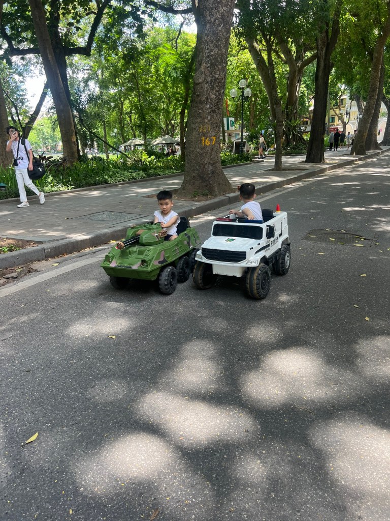 The roads around the lake are closed to traffic over the weekend making it ideal for kids in their makeshift miniature cars…!!
