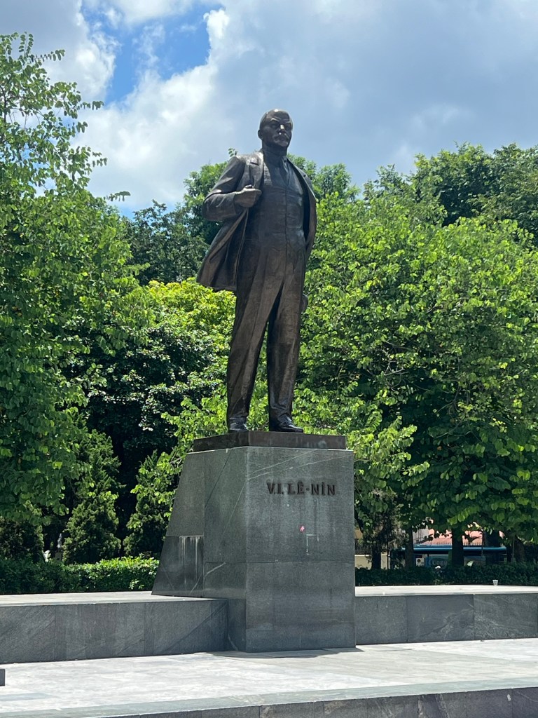 The area around Ho Chin Minh mausoleum was marked by a statue of Lenin and was awash with security.