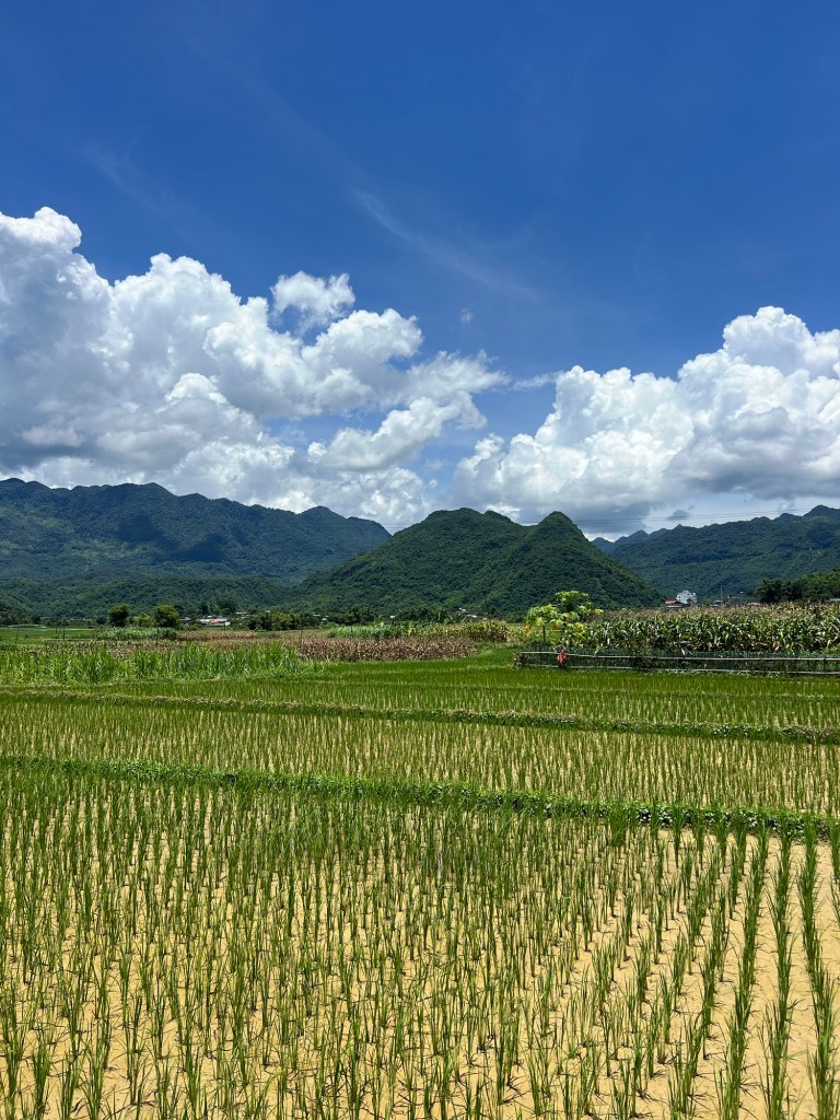 Around the homestay starting point, were fields upon fields of paddy fields with the second rice crop of the year just starting to become established.