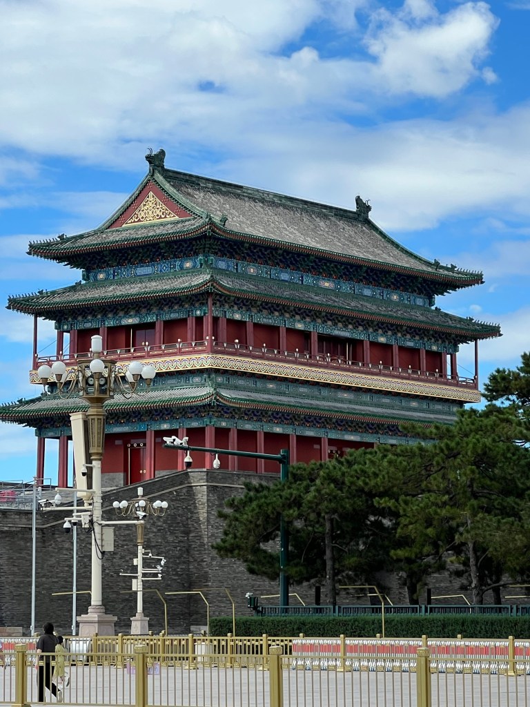 The square is still used for mass gatherings, with the the 38m high ‘Monument to the People’s Heroes’ in central position with two ancient, massive gates at either end, the Tiananmen to the north and the Zhengyangmen, known as Qianmen, to the south.