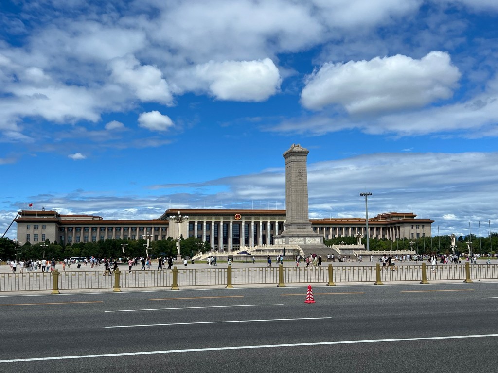 On its southern edge, the Monument to the Peoples Heroes has been erected. This formed part of the Ten Great Buildings constructed between 1958 and 1959 to commemorate the ten-year anniversary of the People’s Republic of China (PRC), the Great Hall of the People and the Revolutionary History Museum were erected on the western and eastern sides of the square.
