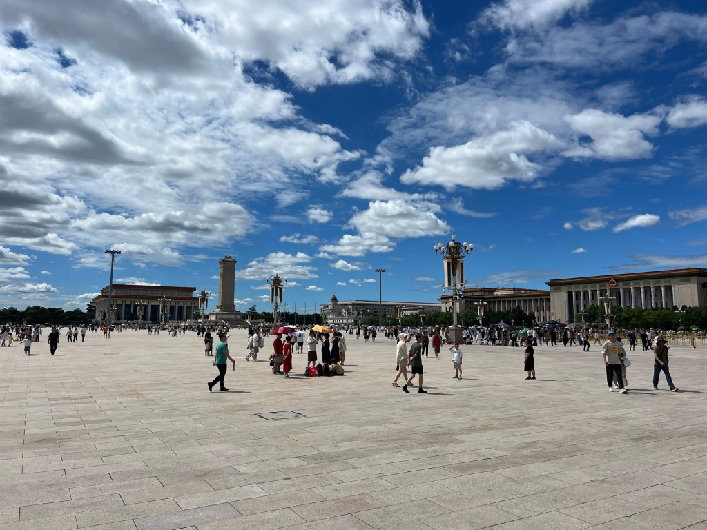 Again we got ahead of the crowds and made our way to the infamous Tian’anmen Square, named after the eponymous Tiananmen (Gate of Heavenly Peace) located to the north, which separates it from the Forbidden City.