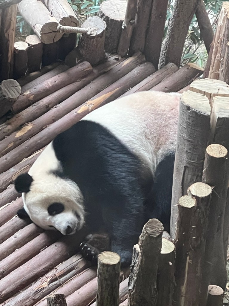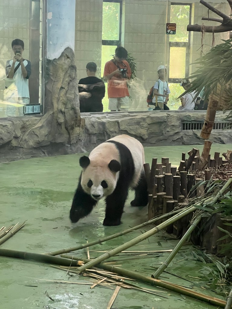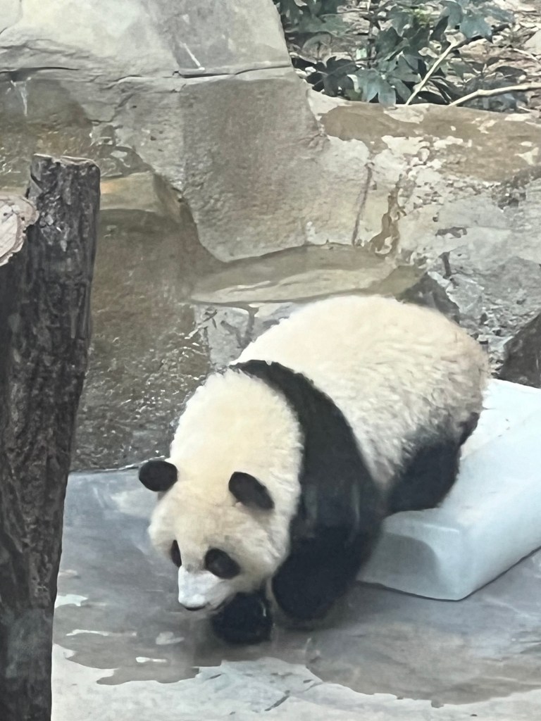 The pandas struggle with the Chengdu heat, with their natural habitat being high up in the mountains. In the base they are kept cool with air conditioning and the occasional large block of ice!