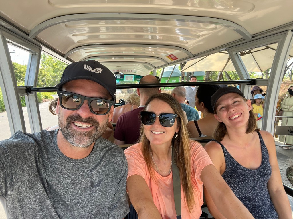 Due to the large area of the breeding base, the best way to get around in the intense heat is by electric golf styled buggies.