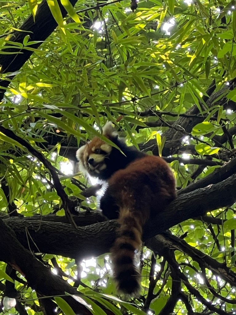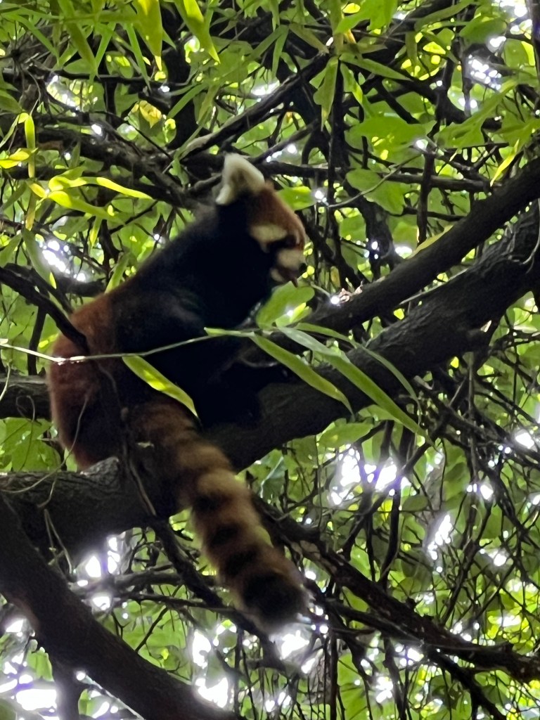 After seeing the Giant Pandas indoors, where the temperatures are controlled, we moved outside to see the Red Pandas. They tend to roam along the ground and then sleep up in the branches of the trees.