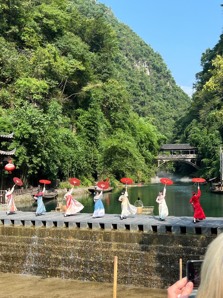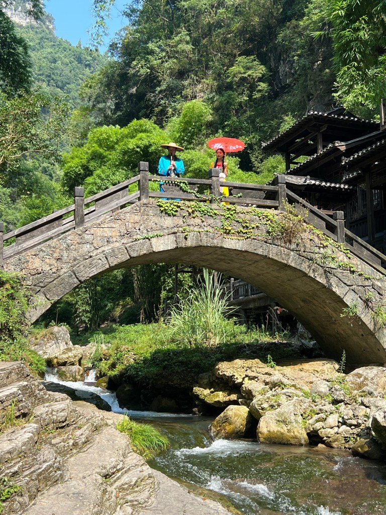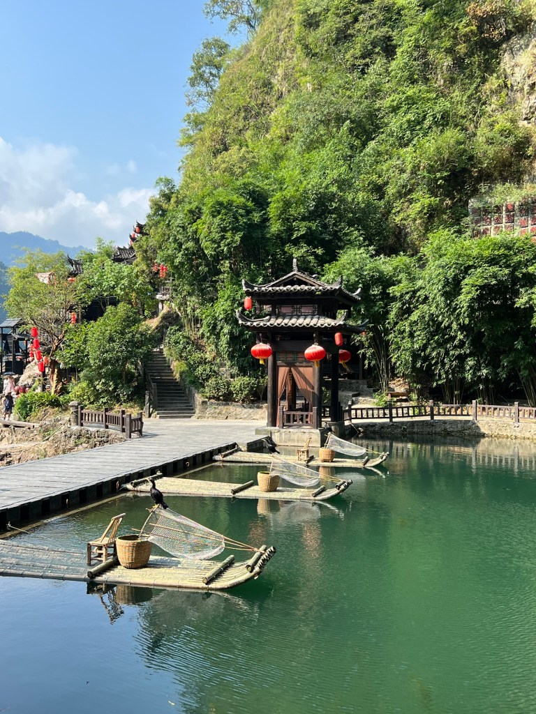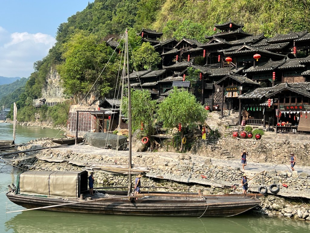 The original village has been restored with stilted houses by the river, built by local people, many of whom are from the ethnic minority group, Tujia.
