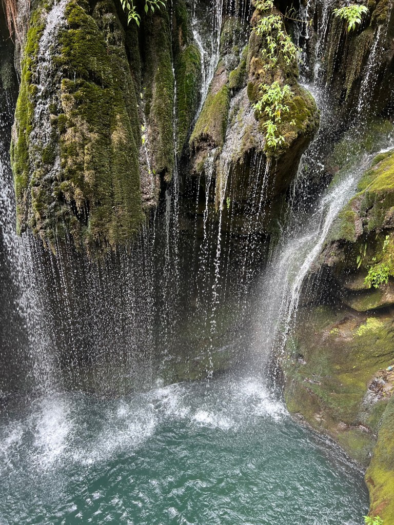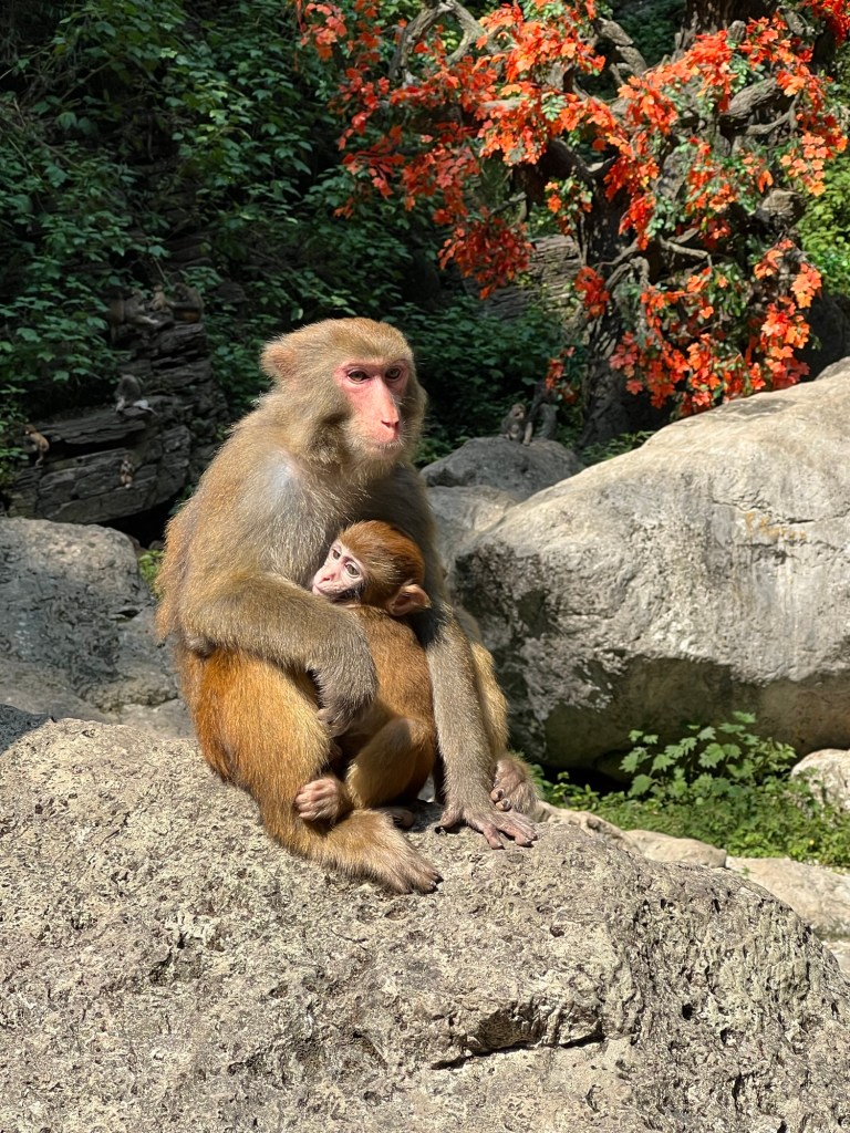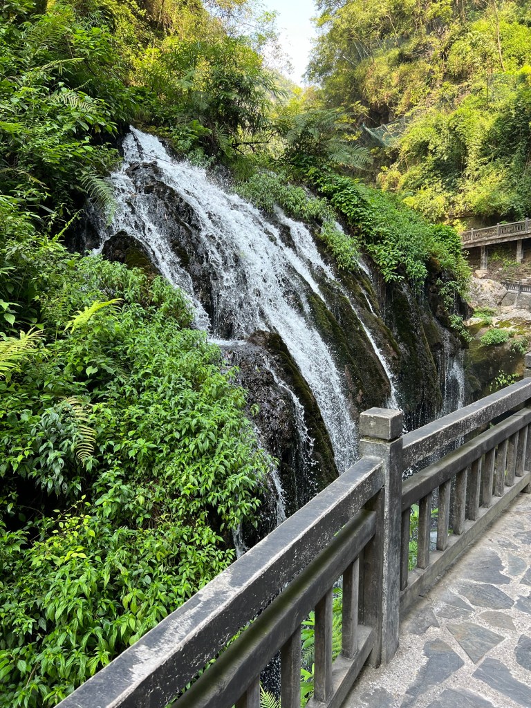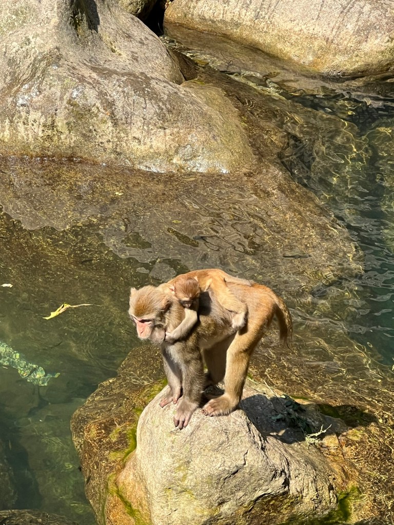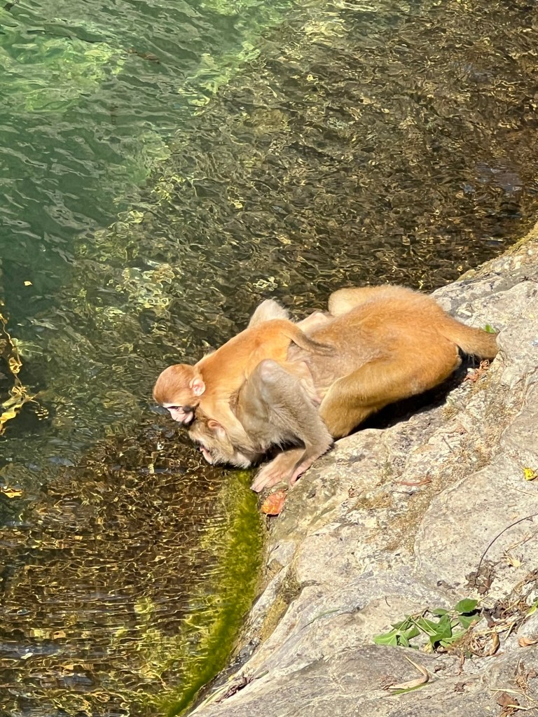 As we got to the end of the path we came across a ‘dragon’ shaped waterfall and stopped to watch a family of monkeys who had gathered to watch our arrival.