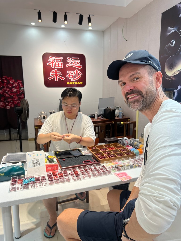 After finding a store that sold a Cinnabar bracelet that we liked, they kindly made a second one for Andy as his wrist is larger than that of the normal Chinese tourists!