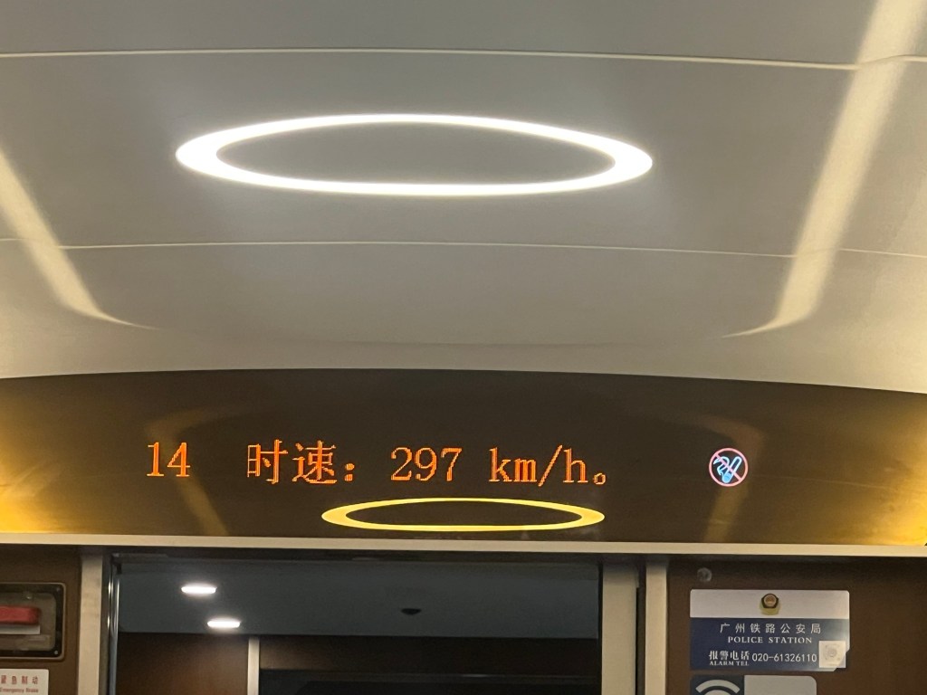 The journey was c. 4hrs and we travelled along at a steady 300kph through endless tunnels before we reached the start of the urban sprawl as we got close to our final destination.