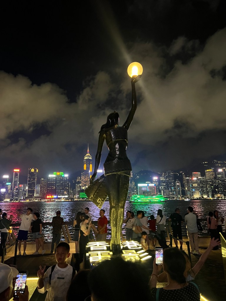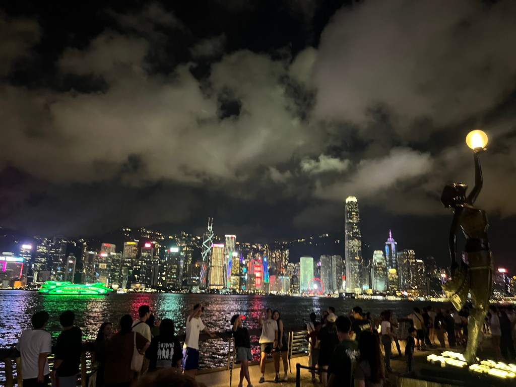 After a pleasant, if unspectacular meal, we walked down to the harbour to the Avenue of the Stars and Symphony of Lights to try and catch the 8pm show. Sadly we were a little late and instead plan to see this spectacular light show another night during our 3 day stay.