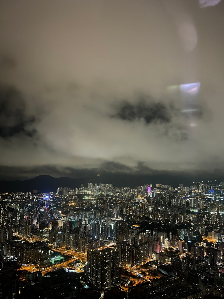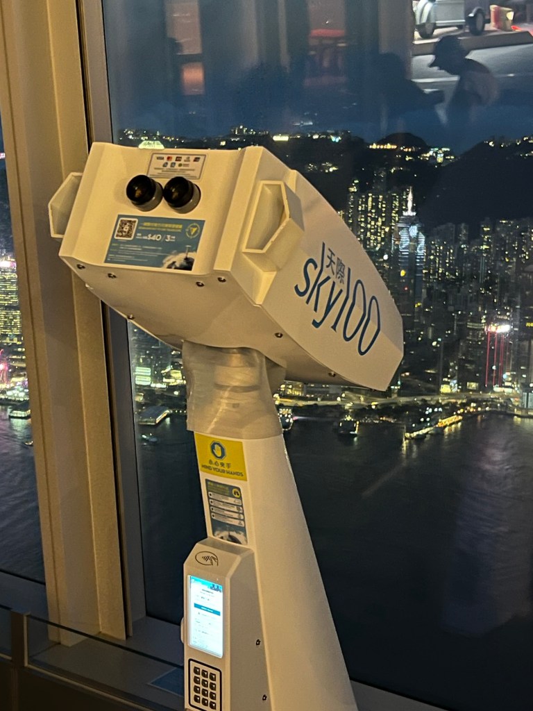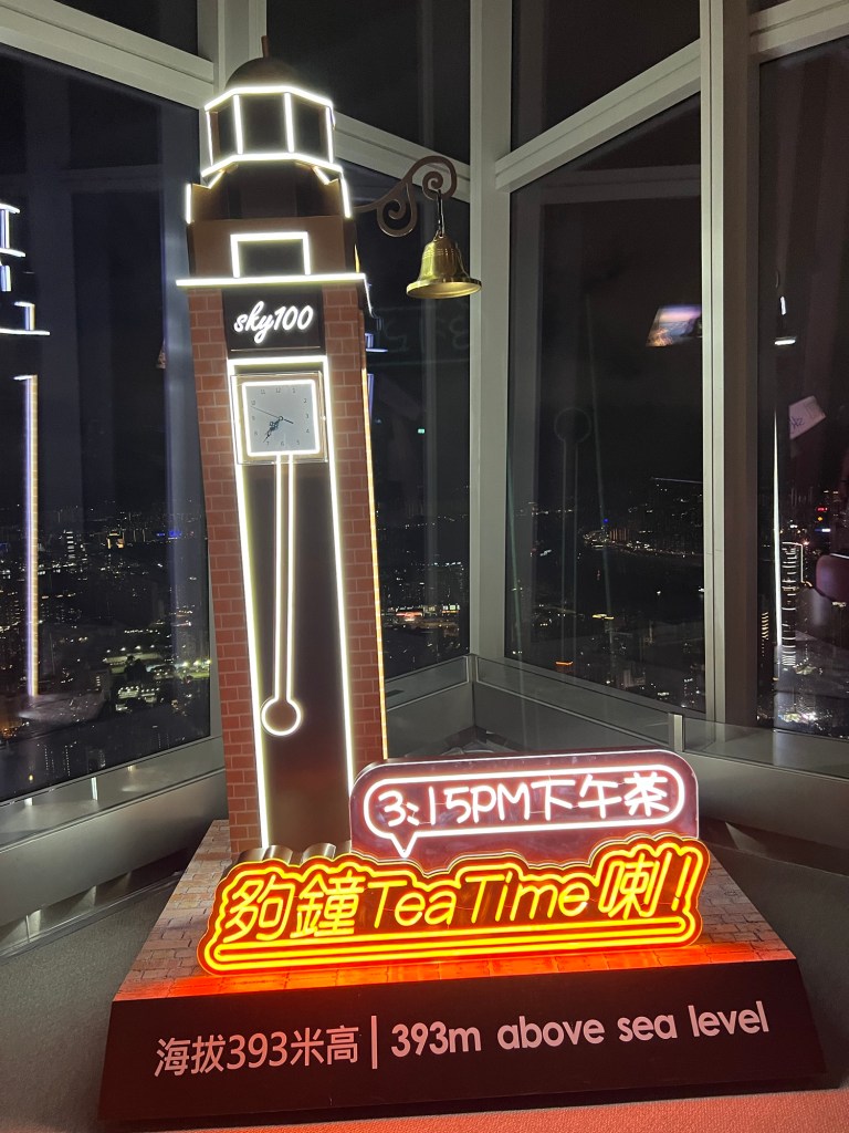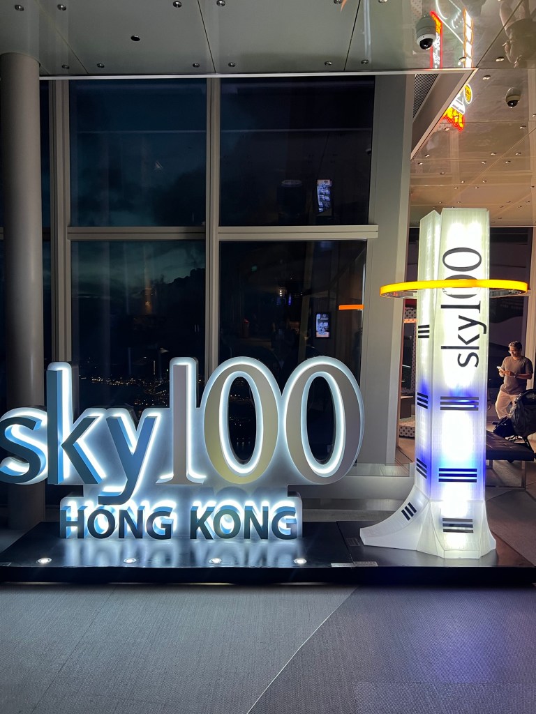 After travelling 394m in a super fast lift, we found our way to the top floor at Sky100 where we had excellent views across the city and out to Hong Kong island.