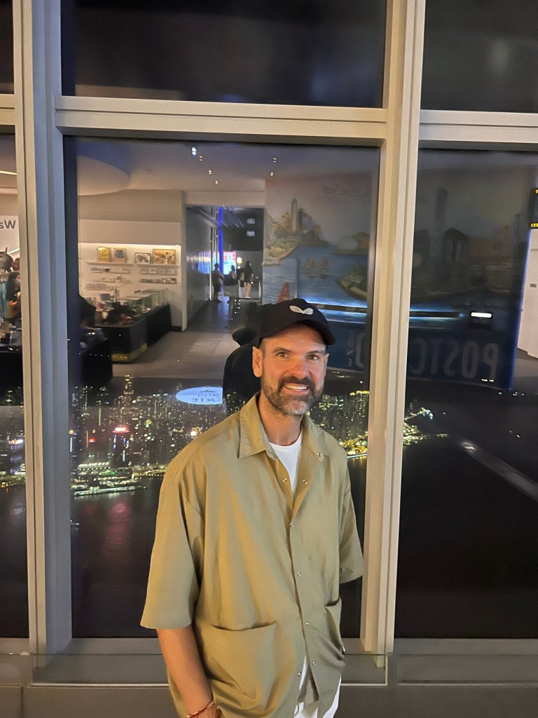 Despite Andy’s fear of heights, he managed to get reasonably close to the edge and look out. It’s progress of a sort, and he didn’t sweat quite as much as he’s done up other skyscrapers.