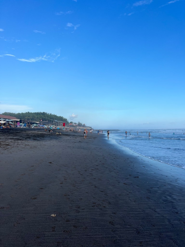 Sitting on the dark sand takes a little getting used to, as subconsciously you feel like you’re lying on mud. That said the views out across the sea and the breaking waves make you realise you’re in a special place.