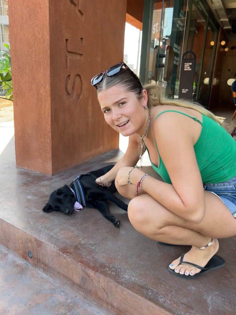 Bali people love their dogs, unlike the Chinese (!), and it’s quite common to see our four legged friends meandering into restaurants on their own or just lounging in the shade. Amelia came across the latter who seemed totally at ease a sleep in the entrance to the cafe with not a care in the world. Reminded us all about how much we miss Coco and what a wonderful dog she is and the great company she offers.