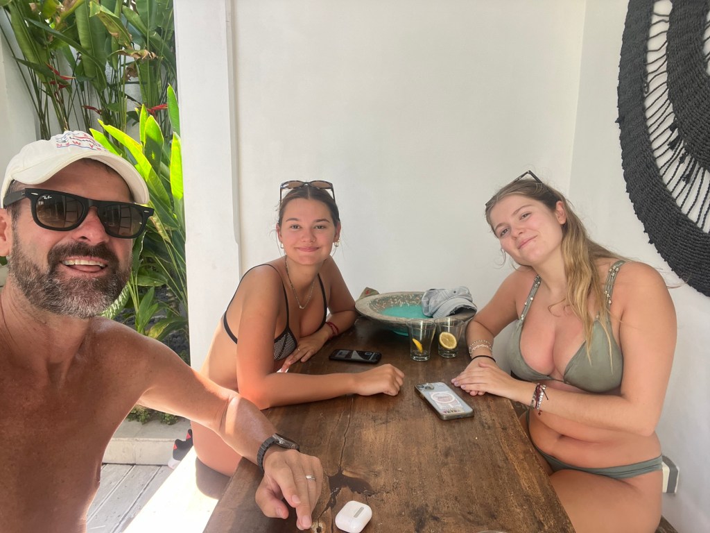 After a pleasant drink at the beach bar, we returned to the Airbnb to pick up the girls before departing for dinner at one of the upscale restaurants in Pererenan. It truly feels like a place to see and be seen.