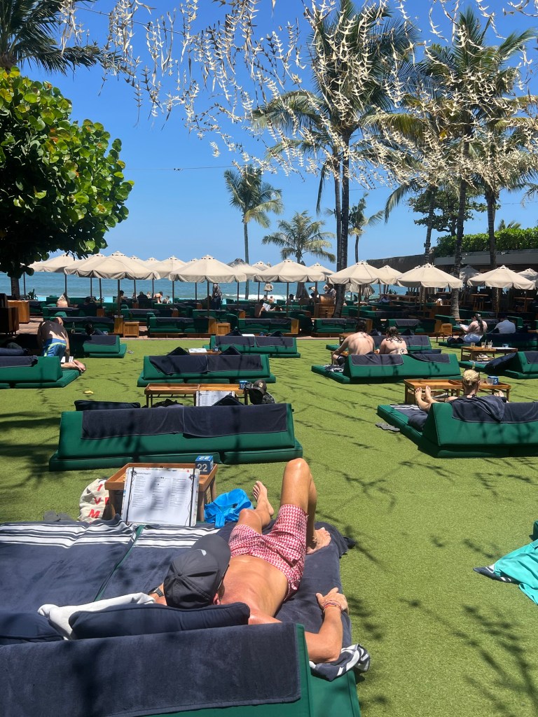 Having secured a beach bed on the lawn for the day, we got comfortable and ordered up some light refreshments.