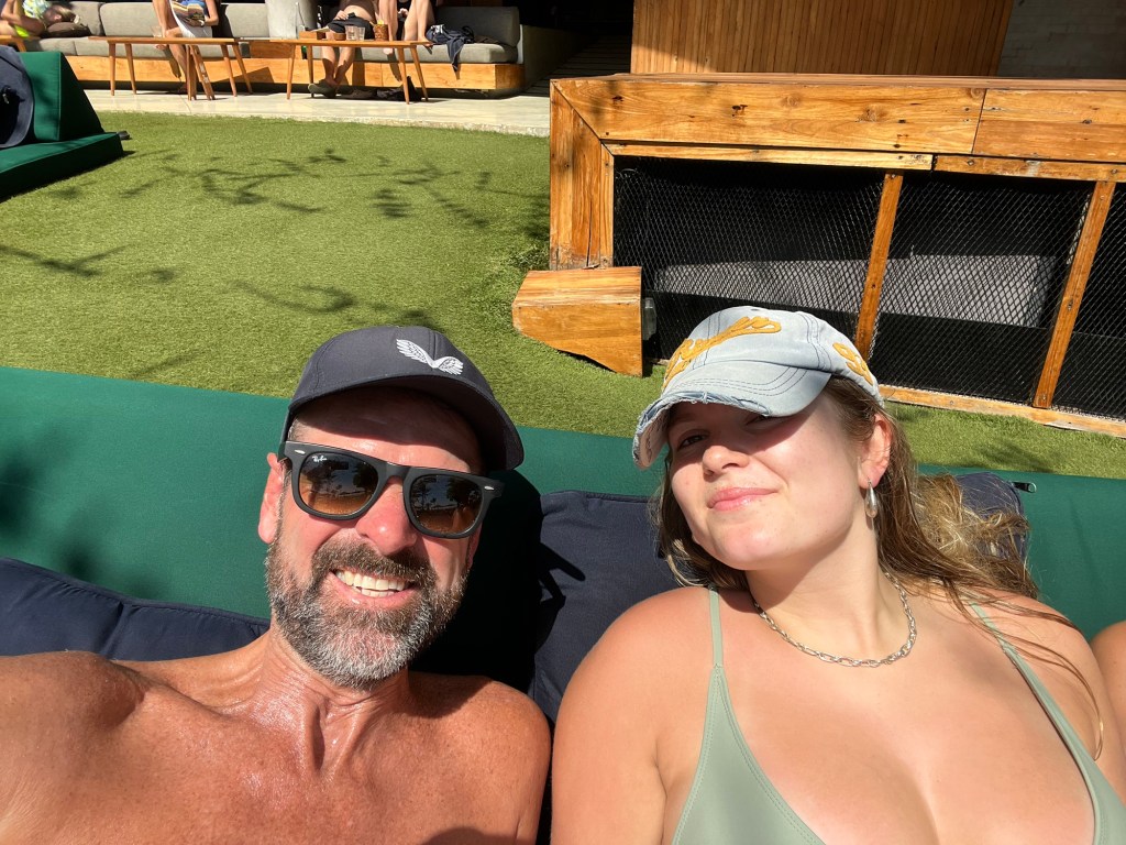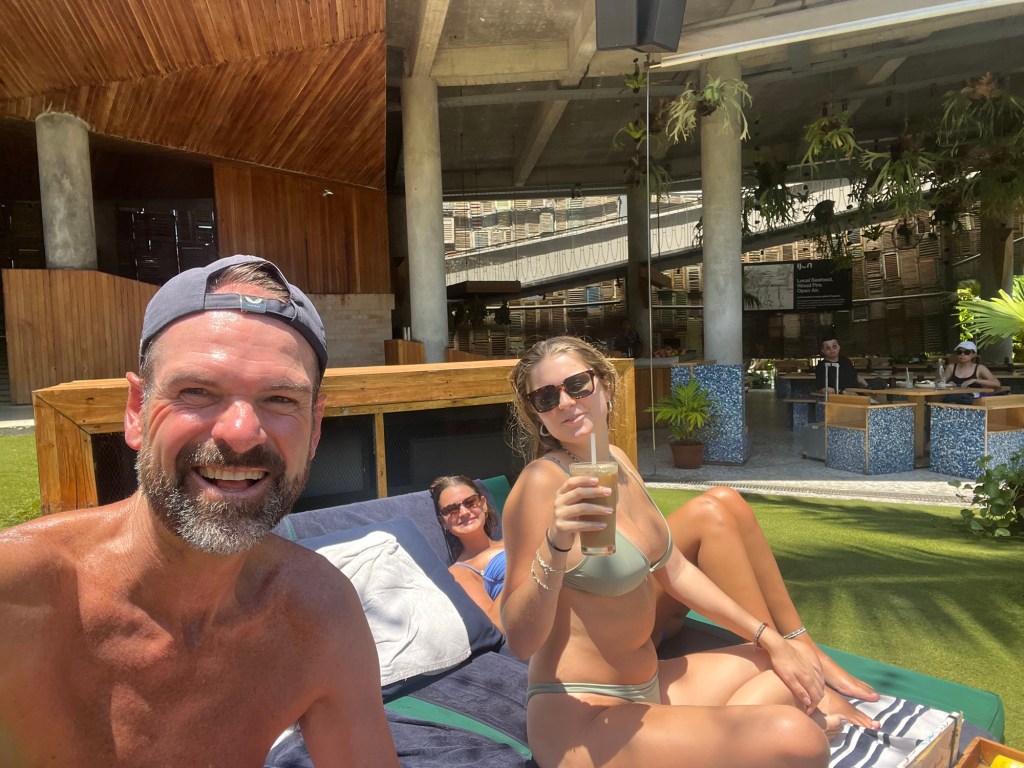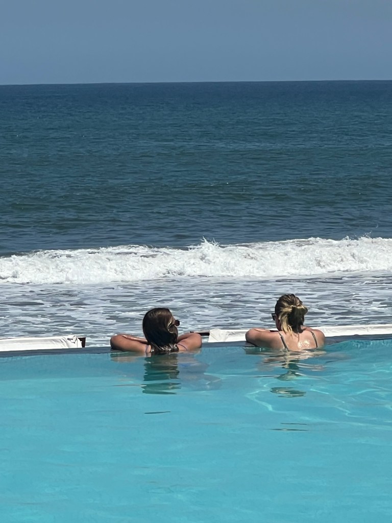 Amelia and Meg took in a spot in the eternity pool and watched the waves rolling in, with an extra eye on the cocktail choices for later in the day!!