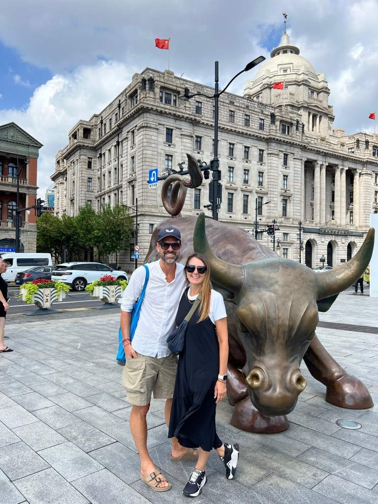 Down on the Bund with the bull that represents the cities credentials as the financial hub for China.