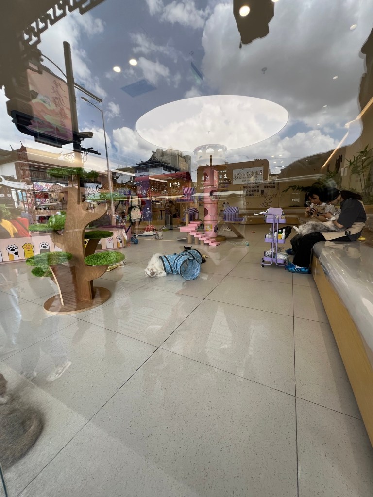 Keeping with the odd and unusual, we left the world of chocolate to go next door to a cat petting store. Loads of cats relaxing in a shop window with toys to play with and grooming attendants. You couldn’t make this up!
