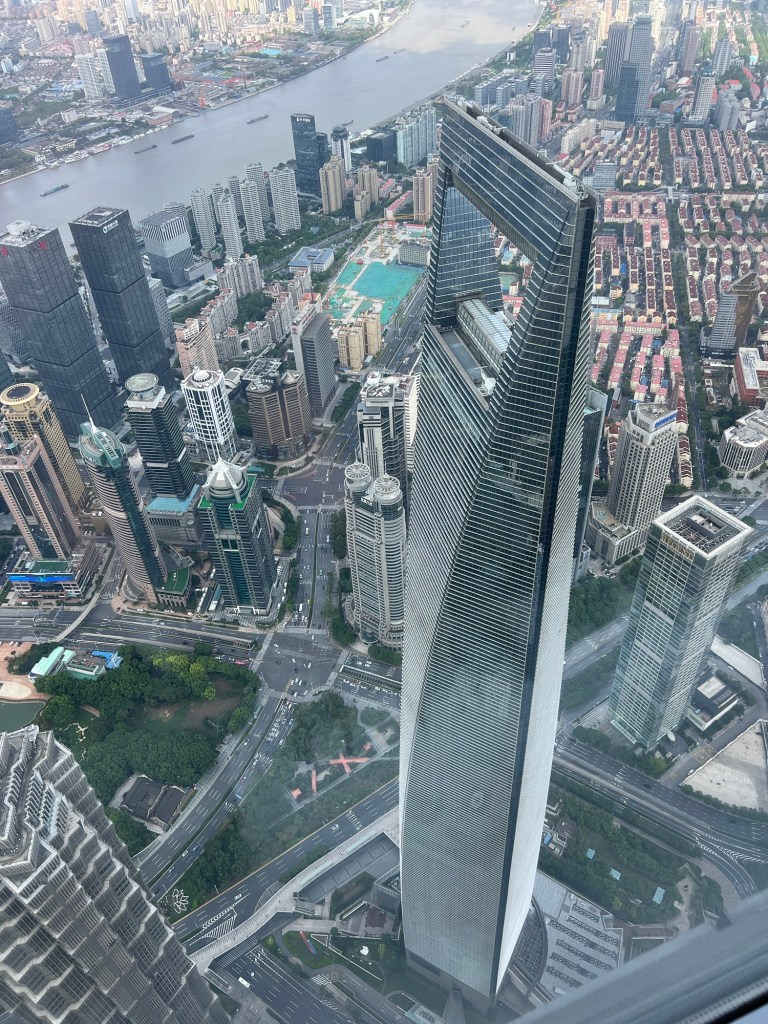 From this point we could see the main three towers, from left to right, the Shanghai World Financial Centre (coined the bottle opener due to the whole at the top), Jin Mao Tower and lastly the Shanghai Tower. These three created the world’s first trio of adjacent supertall skyscrapers.