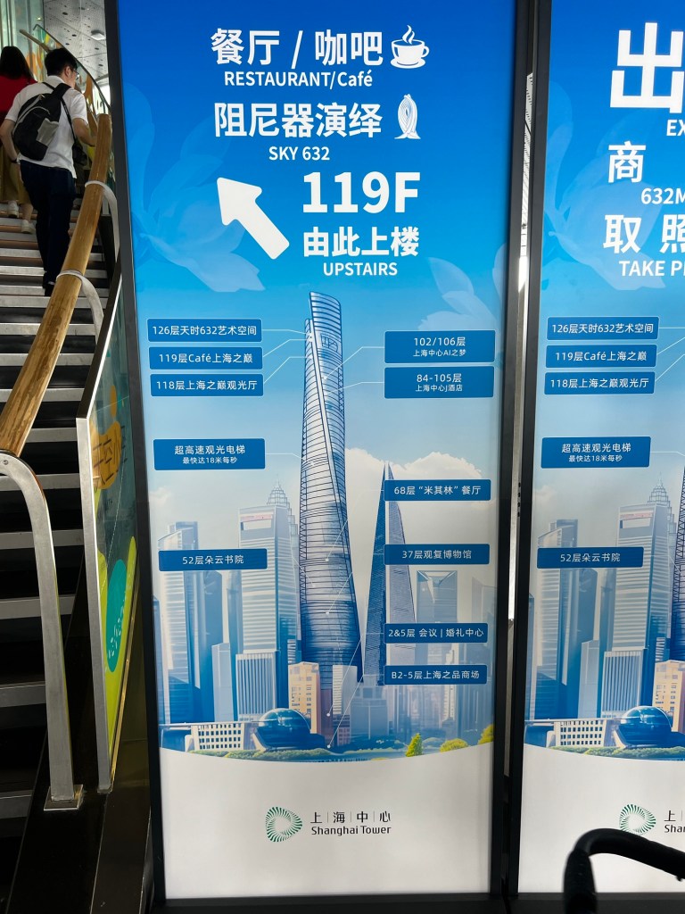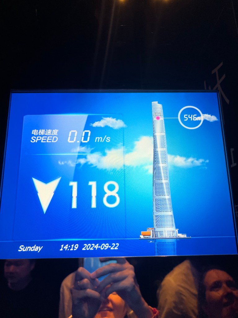 The tower is the tallest in China and has the world’s fastest elevator at a top speed of 20.5 metres per second, equivalent to 46 mph.
