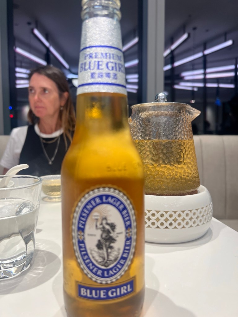 Instead we found a busy restaurant in one of the shopping centres that was busy and well priced called Dongfang Suyan. The chicken and pork were both good and were soon polished off with the help of a local beer called Blue Girl.