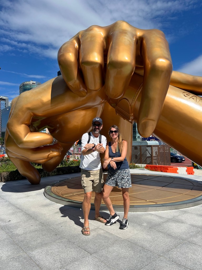 It proved to be a great photo opportunity and where we acted out the Gangnam dance for comedic effect…The giant sculpture has the infamous dance pose that swept the world!!