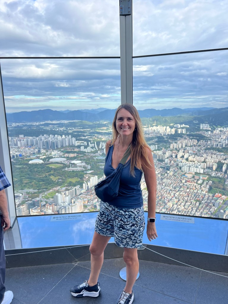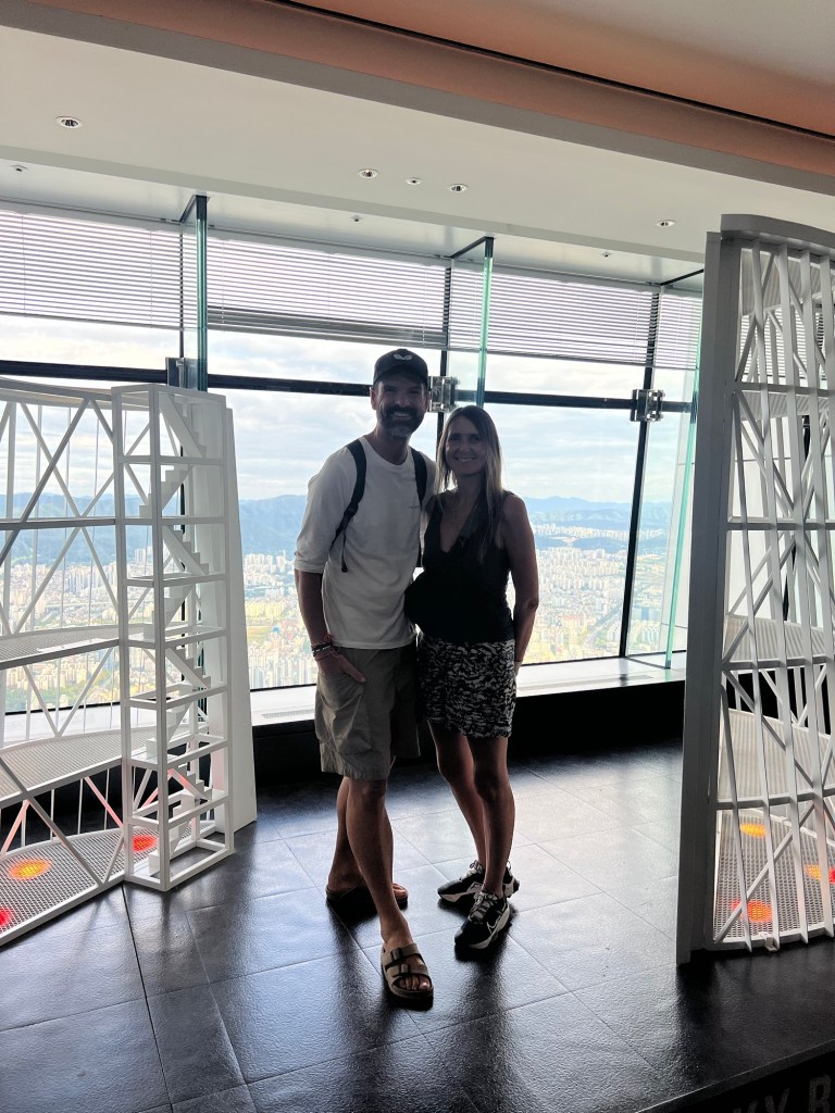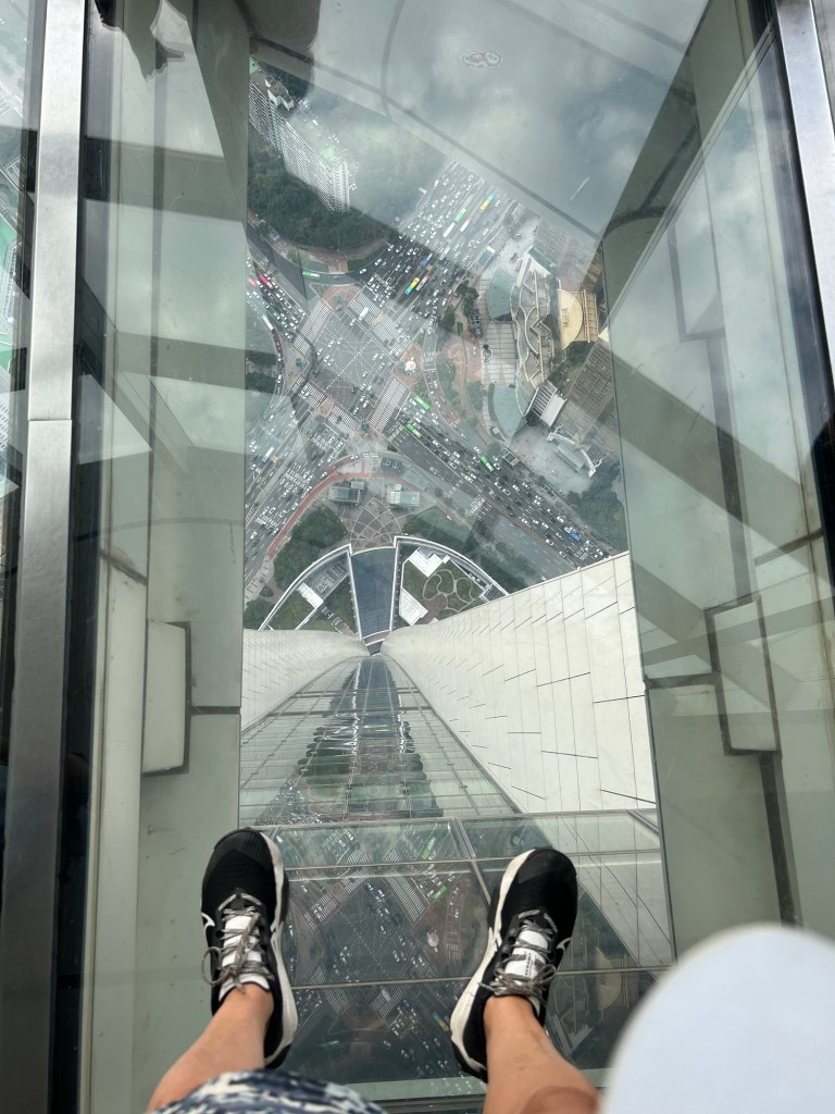 Michelle is more fearless when it comes to heights and had no issue standing on the clear floor at the top with views all the way down from 120 stories. Not something Andy would be prepared to do.