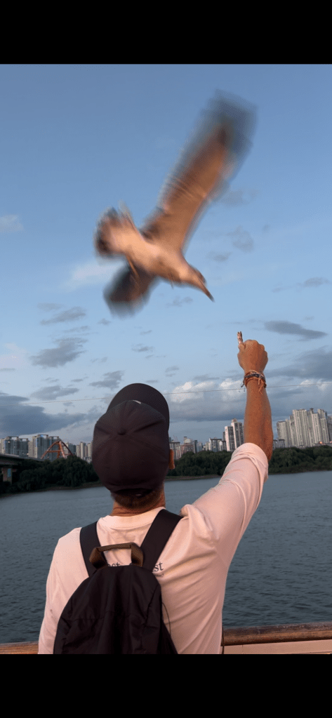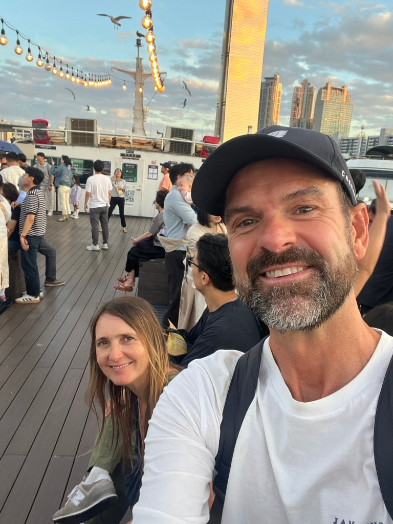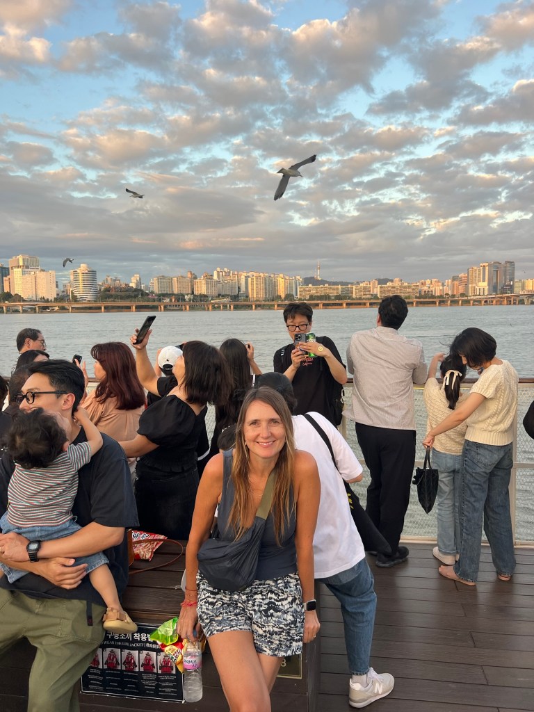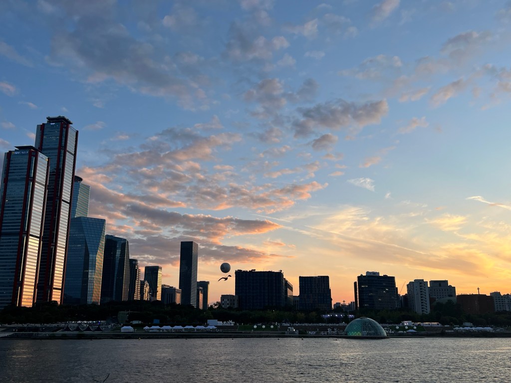 The trip took us down the river to the KBS Performing Arts building and then circled back around Seonyudo Park Island. As the sun slowly disappeared, the night’s sky took on a beautiful orange glow framing the south bank of the city’s skyline.