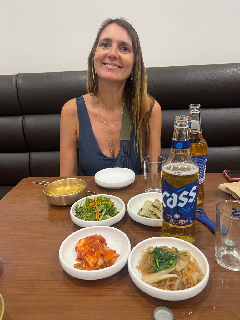We were really keen to try another Korean dish called Bibimbap. Essentially it’s a bowl with a salad of rice, mixed vegetables, beef and egg. We found a great traditional restaurant in the Hyundai Department Store up on the 10th floor. The portion was so large we ended up sharing along with a couple of Cass beers.