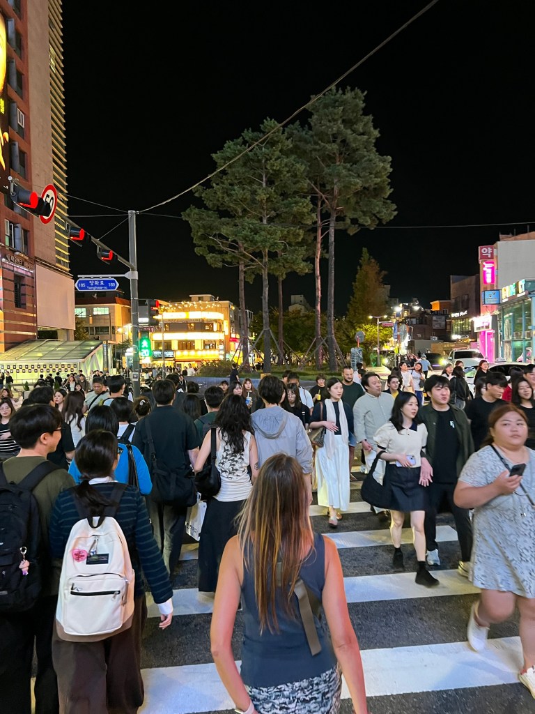 Our guide Marko explained a little more about the bars and restaurants in the area, taking us to Nonhyeon-dong restaurant alley, a bustling street filled with traditional Korean BBQ spots, fusion cuisine and trendy restaurants. It was a foodie’s paradise. We ended up going for Gimbap and Samgyeopsal with a few of the group from the tour.