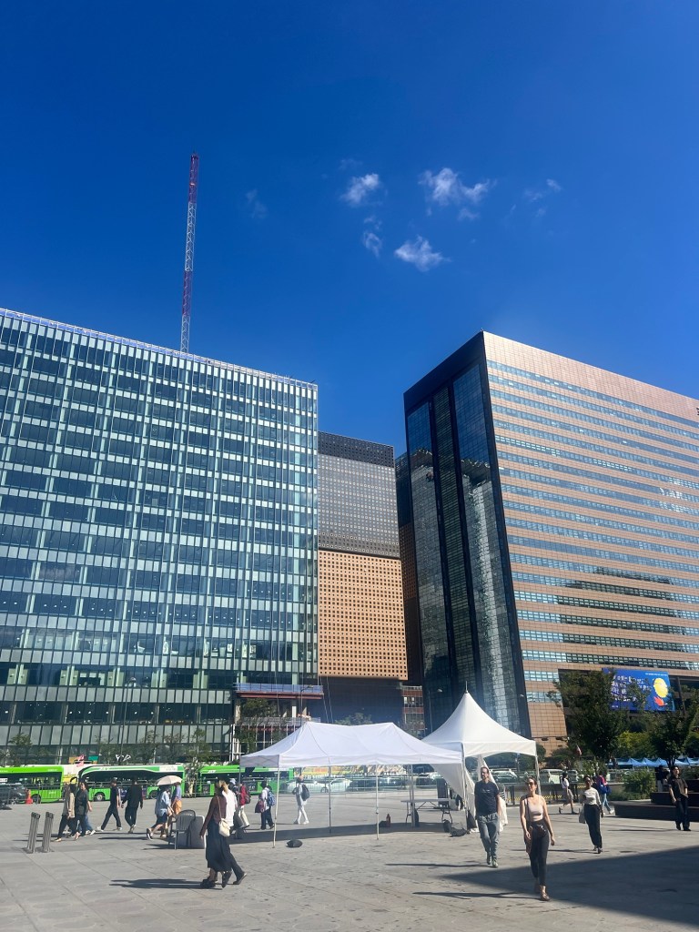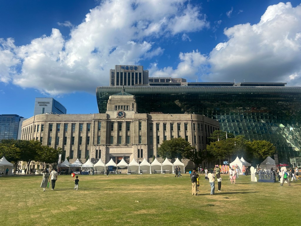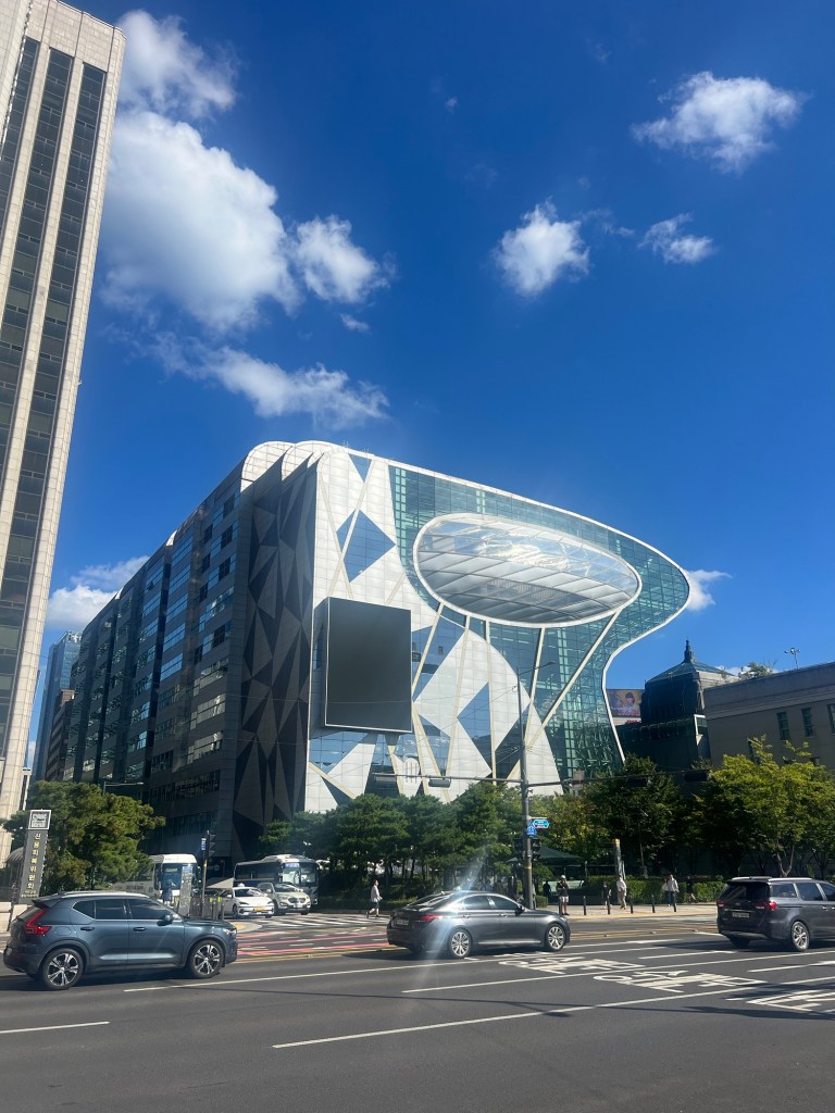 On the way we passed Seoul’s city hall, which was completed redeveloped in 2013 and extended to include a huge glass and steel extension to the rear. It is now a major architectural attraction of the city with a modern reinterpretation of traditional Korean design; the cresting wave provides shade (like the curved eaves found on palaces and temple roofs in Korea) over the handsome old City Hall.