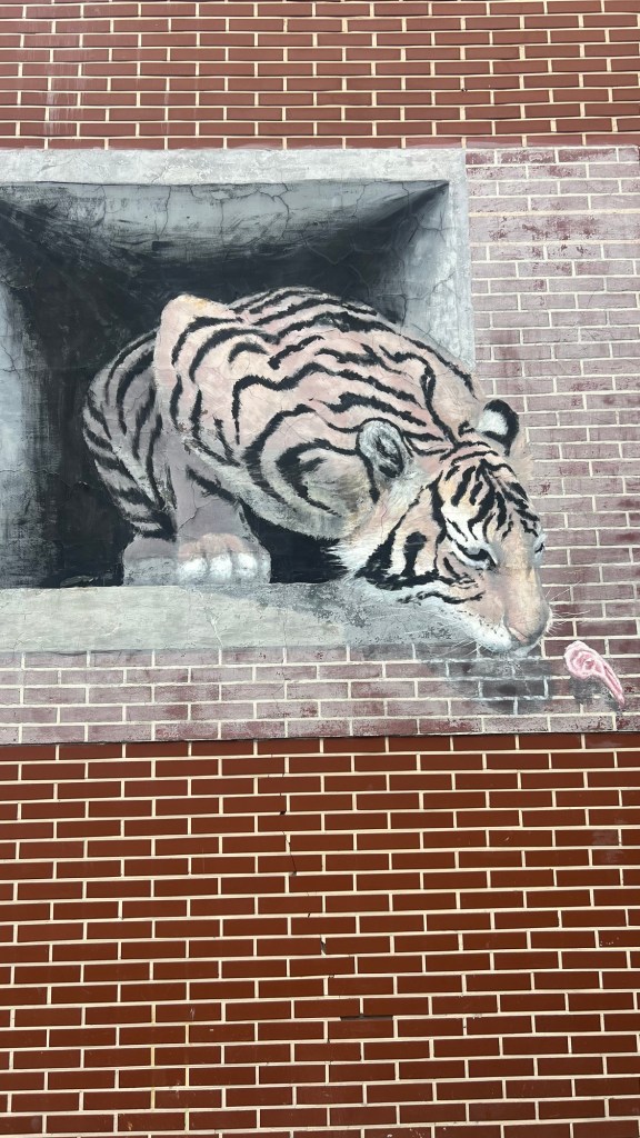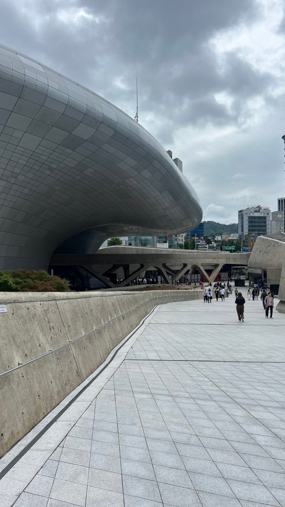 Our first stop was a return to Dongdaemun Design Plaza, as Michelle had missed seeing the area due to her day’s illness. On the way we passed an animal themed area, tigers on a wall and tiny puppy dogs in shop windows.