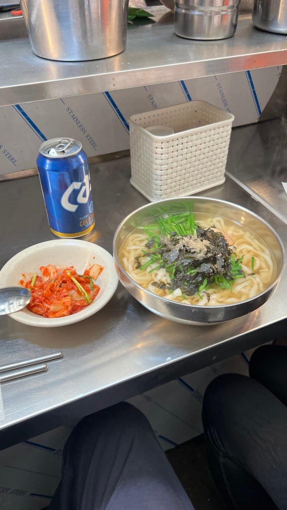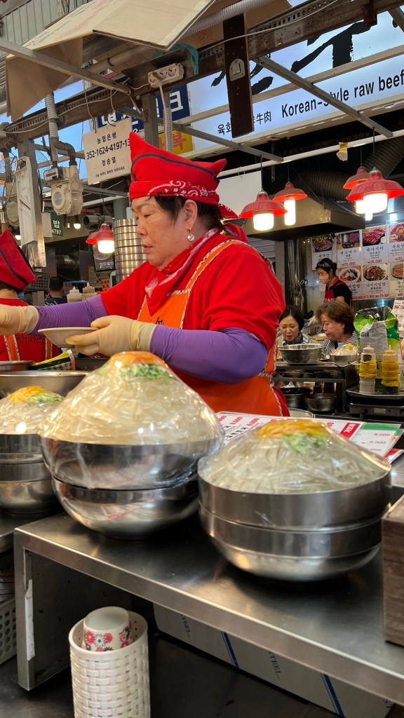As midafternoon approached, we decided to stop at Kwangjang Market for some street food. We went for dumplings in a soup with kimchi. Great Korean cuisine with a spicy kick.