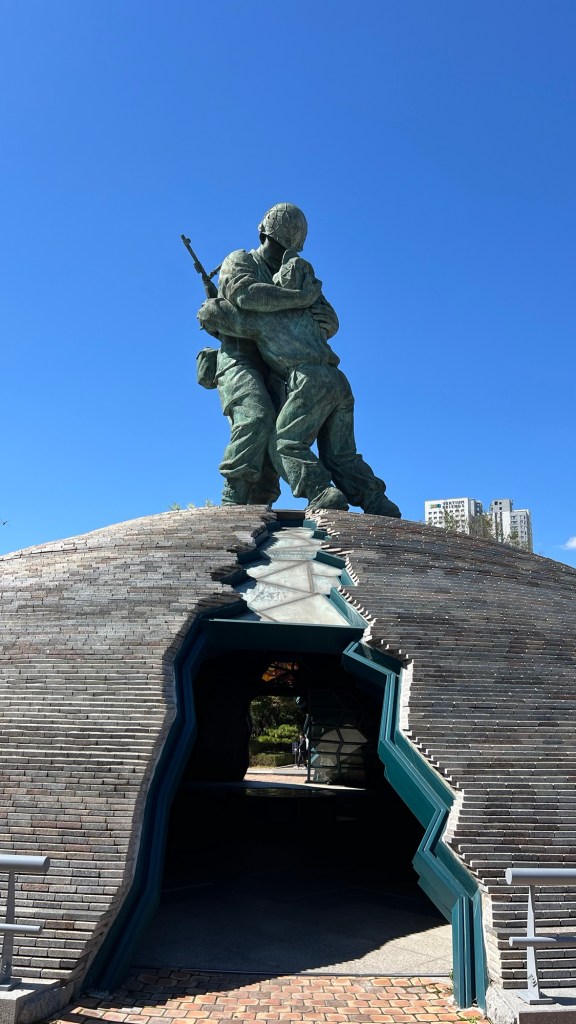 One of the most poignant sculptures is the brothers embracing on the battlefield, the eldest an officer in the South Korean army and the younger a soldier in the North Korean army. The desire for unification at some point, is abundantly clear.