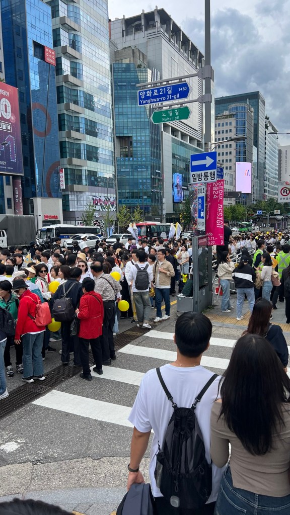 When we arrived on the main shopping street in Hongdae there were protests and tons of police, which we gather was down to local elections and a desire from a section of the population for change. The rest carried on shopping and hitting the restaurants on their national holiday.