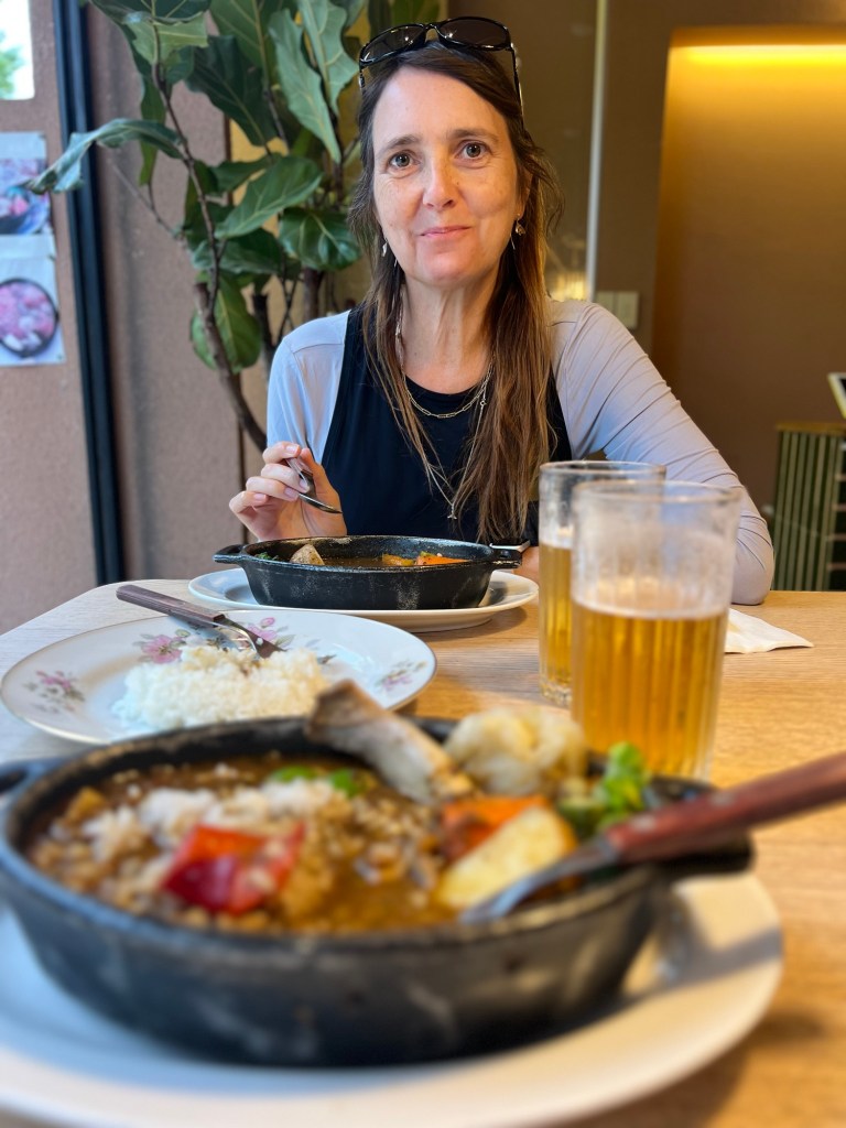 Fortunately we found a great restaurant, with views down the Main Street and went for their speciality, a curry soup of vegetables and chicken. It’s fair to say that it was one of the best dishes we’ve had in South Korea. Incredibly flavourful and filling and not bad at just £6 a dish.