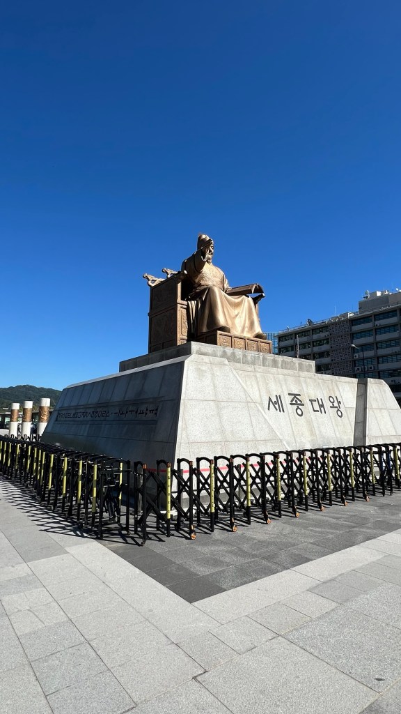 We got a history lesson on the various warrior kings in statue form, notably Sejong the Great, the fourth king of the Joseon dynasty, who personally created Hangul (the Korean alphabet) in 1443.
