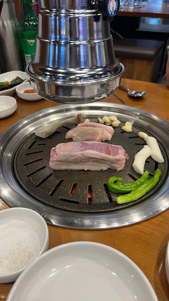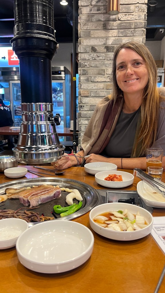 This evening we went for a Korean BBQ and experienced the full range of alcoholic local drinks with both Soju and a Terra beer, before hitting the pork loin on the bbq along with mushrooms, garlic, peppers and onions.