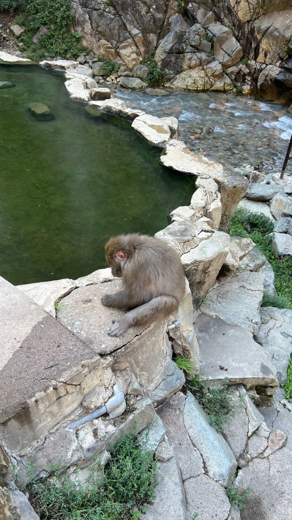 Whilst we were only a few feet away, the monkeys seemed totally at ease with us and pretty much ignored our presence, with a couple happily walking past our feet to move from the rocks to the hot spring pool.