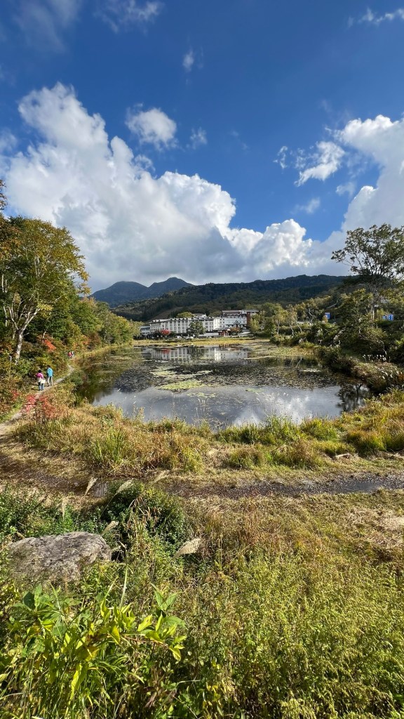 Fortunately despite the signs and the bear-bells, none were spotted, and the 3k walk around the pond and nearby Hirao ski area proved uneventful.