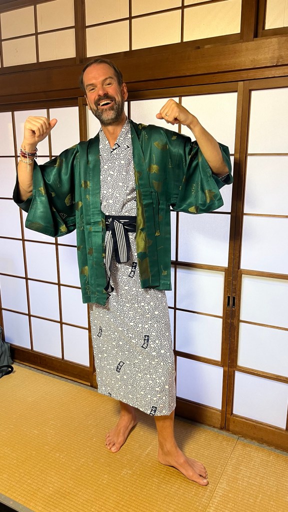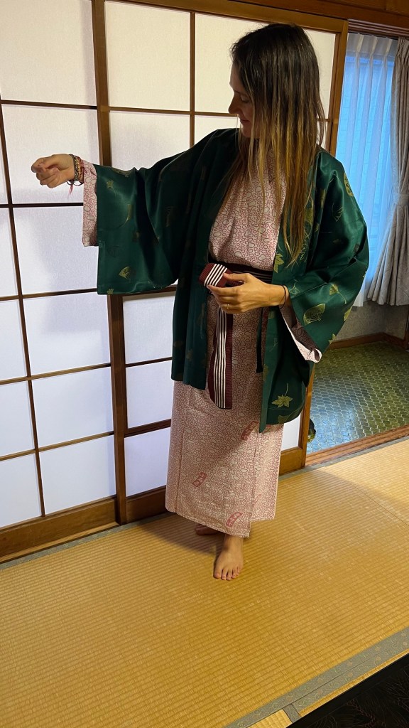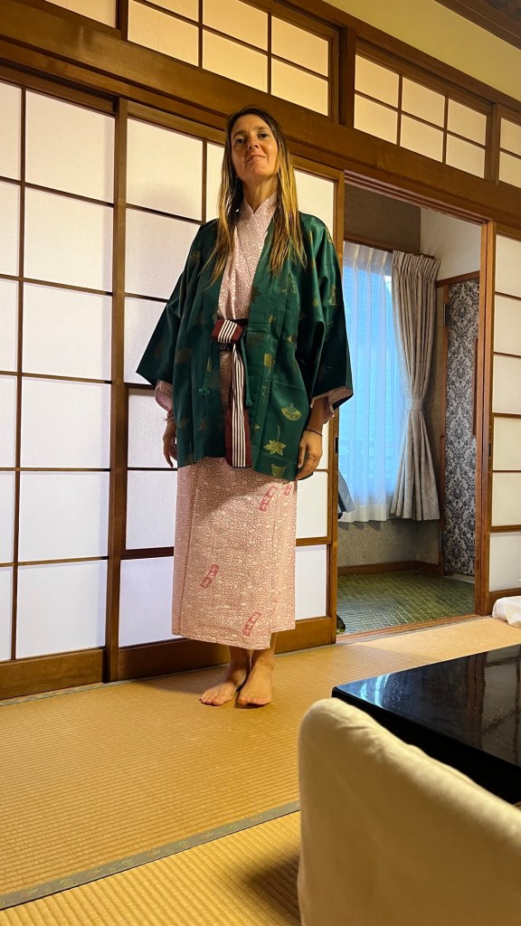 Before we headed to the public Onsen (hot spring baths) we were required to dress in traditional Japanese Kimonos.