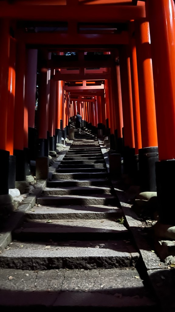 After getting the subway to Fushimi Inari Taisha Shrine around 4.30pm, we had the pleasure of 10,000 vermillion torii gates to pass on our way to the shrine mountain summit.