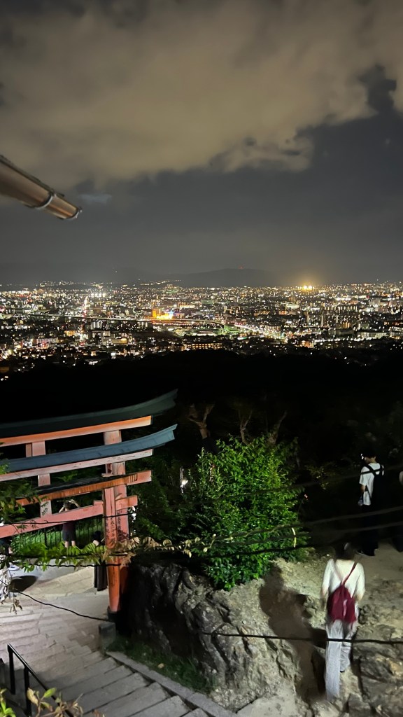 After a 50 minute hike, we eventually arrived at the top and took in the views over the night sky above Kyoto.