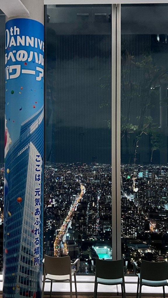 After a pleasurable day in Nara, we returned to Osaka and made our way to Abeno Harukas 300 Observatory, a 60 storey/300m tower in the centre of the city that offered spectacular views across Osaka.