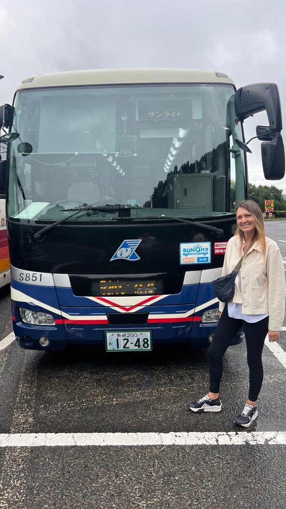 Like all things in Japan, the coach was on time and left at 7.20am on the dot and maintained its stops to the nearest minute. Half way we had a toilet break and this gave us the opportunity to get some photos of the Nagasaki ‘Express’ as we named it.