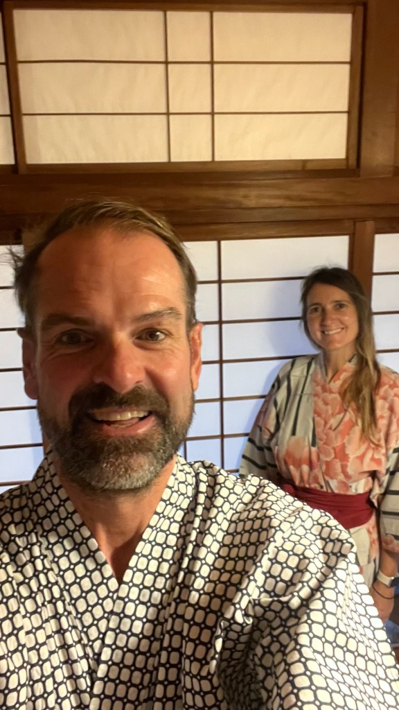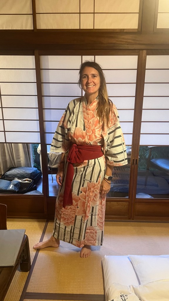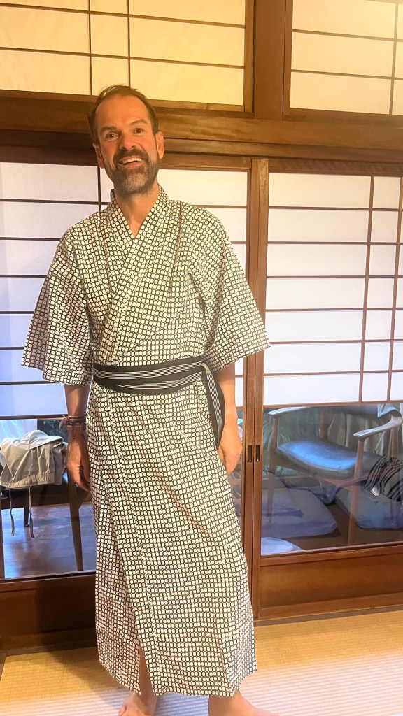 Our Japanese inn featured a tatami-matted room, communal baths, and in the public areas as visitors we wear nemaki’s.